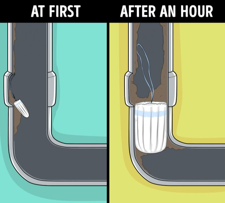 Les produits d'hygiène féminine comme les tampons et les serviettes sont conçus pour absorber l'humidité. Bien qu'utiles pour leur usage, cela les rend risqués à jeter. Une fois dans l'eau, ils gonflent et peuvent provoquer de graves blocages de plomberie.