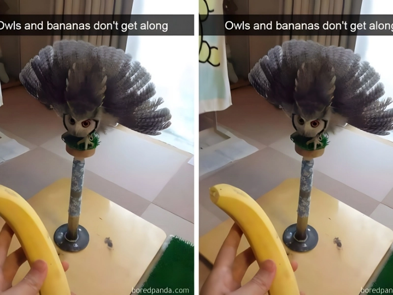 Appareil photo potentiel : Sharp Edge+ Lieu d'achat : Amazon, MotorolaPrix moyen : 700 $* Les hiboux sont souvent vus comme sages et calmes, mais ils sont aussi des chasseurs habiles. Avec peu d’ennemis naturels, ils comptent sur leurs talents pour survivre. Dans un twist amusant, ce hibou semble intimidé par une banane, se gonflant pour tenter de l’effrayer. Parfois, un peu d’humour peut même perturber les plumes d’un prédateur.