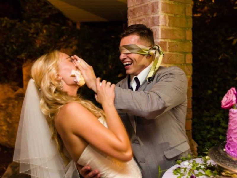 Le marié a mis tout son cœur dans ce moment, offrant à la mariée un morceau de gâteau avec tout l’amour et la sincérité dont il était capable. Les conséquences désordonnées n’ont fait qu’ajouter au plaisir, rendant ce souvenir précieux qu’ils chériront et riront pendant des années.