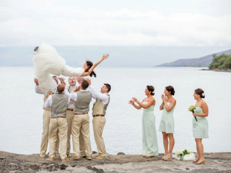 Lancer des mariées près des falaises est-il une nouvelle tradition ? La pose audacieuse et les rires nerveux dans cette photo la rendent à la fois palpitante et hilarante, laissant tout le monde sur le bord de son siège.
