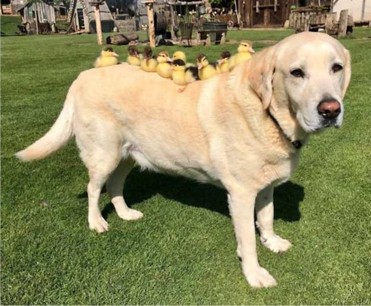 3. Après la disparition de la mère de neuf canetons ce chien du château les a recueillis.