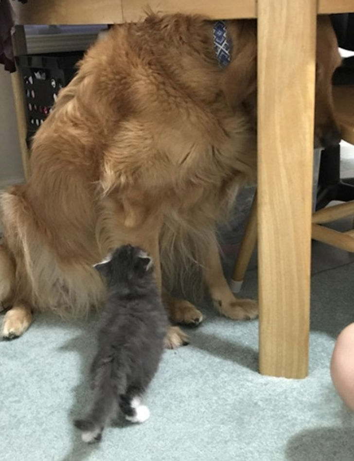 5. "Le chaton de 1,5 livre de ma sœur effraie mon chien de 85 livres."