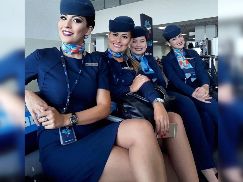 Charmantes hôtesses de l’air en attente de leur prochain voyage. Cette photographie montre probablement un groupe d’élégantes hôtesses de l’air à l’aéroport, peut-être dans un salon de départ ou près d’une porte d’embarquement. Vêtues d’uniformes impeccables avec des accents stylés comme des foulards ou des chapeaux, elles dégagent professionnalisme et assurance. L’image pourrait les capturer dans un moment de détente avant l’embarquement, révélant un côté plus personnel. Leurs expressions vont de sourires amicaux à des conversations décontractées, montrant la camaraderie parmi l’équipage. L’arrière-plan présente des scènes d’aéroport—passagers, panneaux de départ ou avions visibles à travers de grandes fenêtres. Cette image rend les hôtesses de l’air accessibles, rappelant aux spectateurs que derrière les uniformes se trouvent des individus avec leurs propres histoires. Elle met également en avant le travail d’équipe et l’amitié essentielles dans leur profession. Leur attrait est défini autant par leur chaleur et leur approche que par leur apparence.