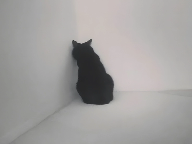 Comme la réplique célèbre "Personne ne met Bébé dans un coin" ce chat a choisi une place solitaire tourné vers le mur ignorant le monde.