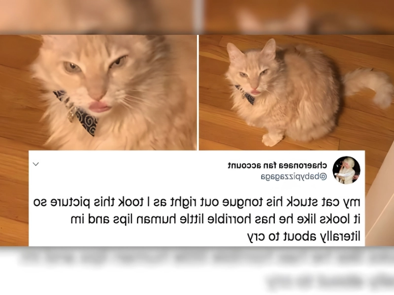 L utilisatrice Instagram @babypizzagaga a pris cette photo de son chat orange langue sortie donnant l impression de "petites lèvres humaines drôles."