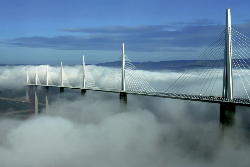 S'élevant au-dessus de la vallée du Tarn, le viaduc de Millau est un chef-d'œuvre d'ingénierie et un symbole de la modernité française. À 342 mètres au-dessus du sol de la vallée, c'est le pont le plus haut du monde, ses pylônes élancés atteignant les nuages. La vue depuis le pont est tout simplement spectaculaire, mais pour ceux qui ont peur des hauteurs, le traverser peut être une véritable épreuve de nerfs. La sensation de glisser haut au-dessus du paysage, avec seulement une route étroite sous vos pieds et le ciel ouvert tout autour, est à la fois palpitante et intimidante.