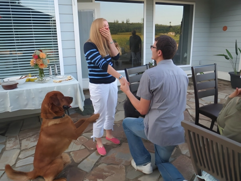 Ce chien agit-il comme prévu ? Alors que cet homme proposait à sa petite amie, leur chien s’est joint à eux, comme s’il demandait aussi une bague. Ce moment est vraiment unique. N’importe qui serait charmé par la demande innocente de ce chien. L’homme doit avoir bien éduqué son fidèle compagnon. Maintenant, son meilleur ami est devenu son meilleur allié. En y regardant de plus près, peut-être que le chien attend juste sa propre proposition de la part du marié.
