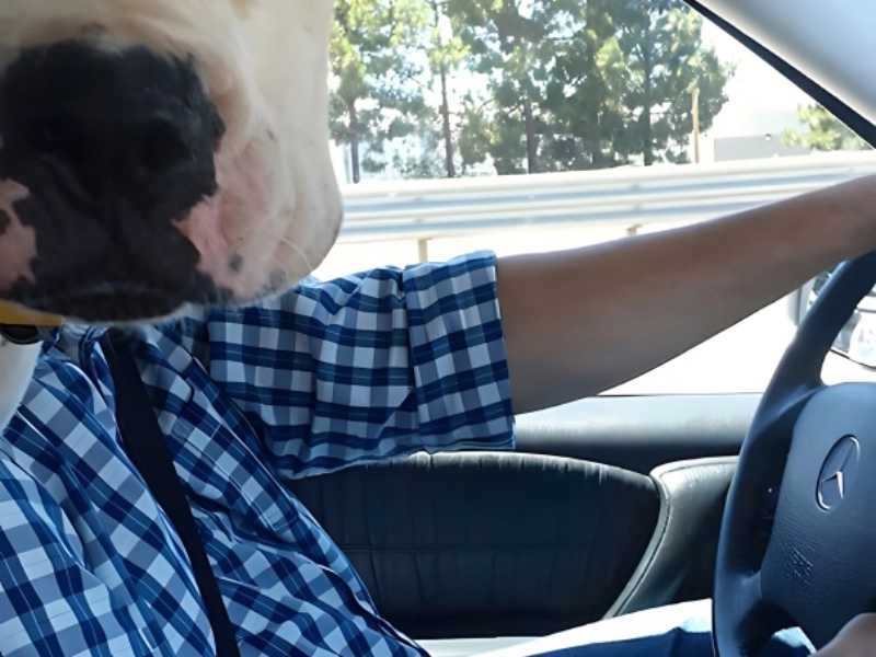 Soit ce chien apprend à conduire, soit il chauffe son humain pour aller au travail. Quels autres talents a-t-il ? Son look est parfait—même sa tenue correspond à ses yeux. C’est le visage que nous faisons tous quand nous sommes coincés dans les embouteillages.