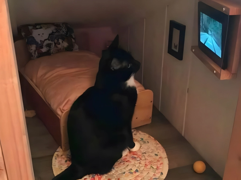 Cette photo montre jusqu’où les amoureux des chats peuvent aller pour leurs animaux. Certains créent même une pièce spéciale rien que pour leur chat—car chaque félin mérite un peu d’intimité !