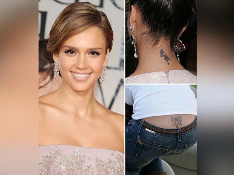 Jessica Alba est reconnue pour des tatouages chacun avec son histoire. Un nœud sur le bas du dos ajoute élégance. D autres au poignet et au cou ont une valeur spéciale. Ils évoquent amour force individualité reflétant son parcours et son engagement envers l expression personnelle.